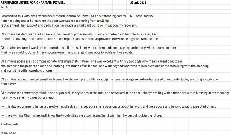 DANKIE Se VIR SHEILA SE VERSORGIINGS DIENS AAN MY DOGTER JADWIGA VANDAG, SY